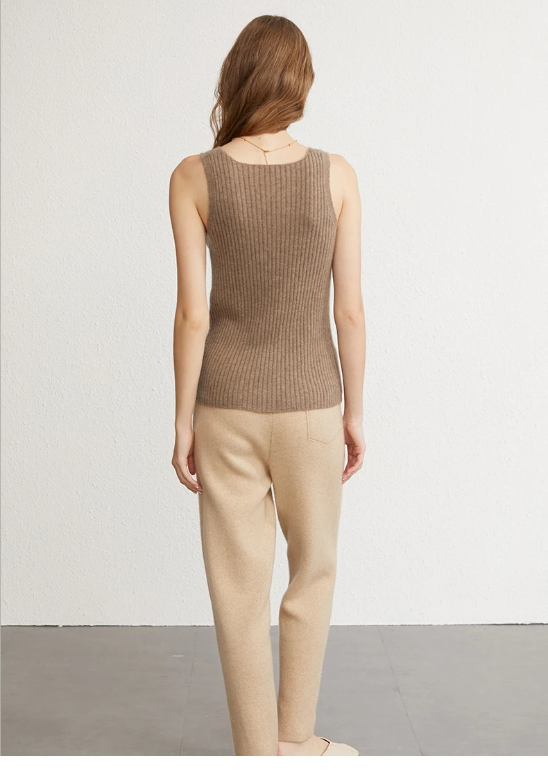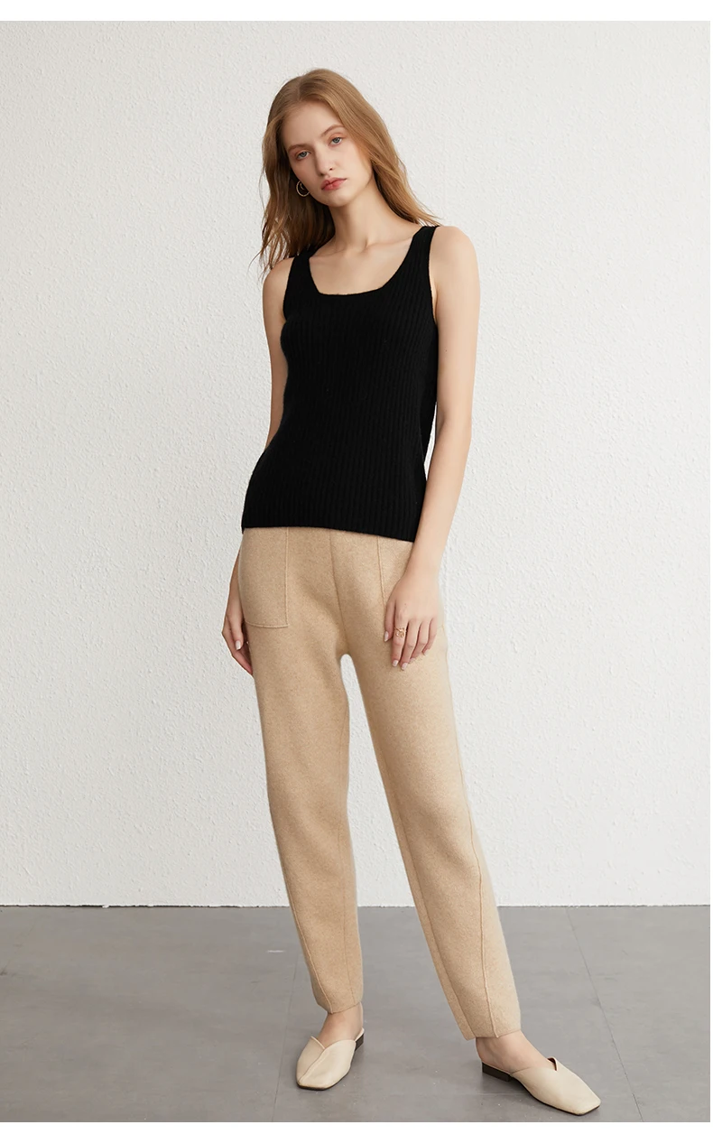 Ribbed Tanks 100% Baby Cashmere Elastic Tank Top Cami Square Neck Knit Camis Feminine All-Match Camisole