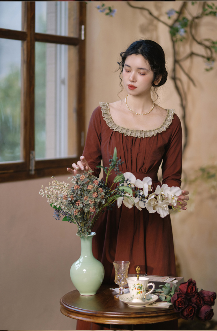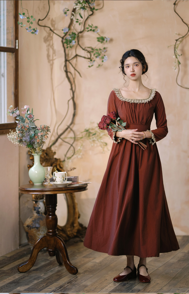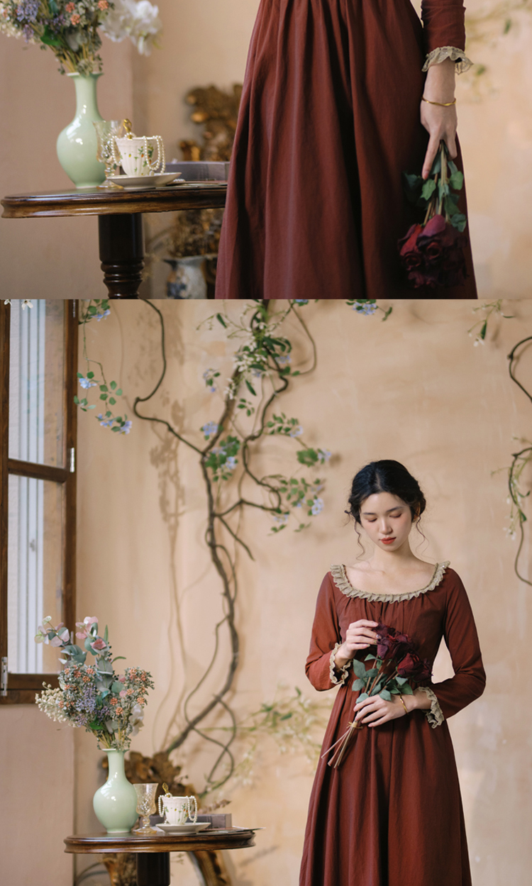 Indulge your sense of whimsy! Made from a luxurious blend of cotton and linen, this full length dress will transport you back in time to another era. Embrace your inner romantic and stand out in style with this unique and eye-catching piece.
